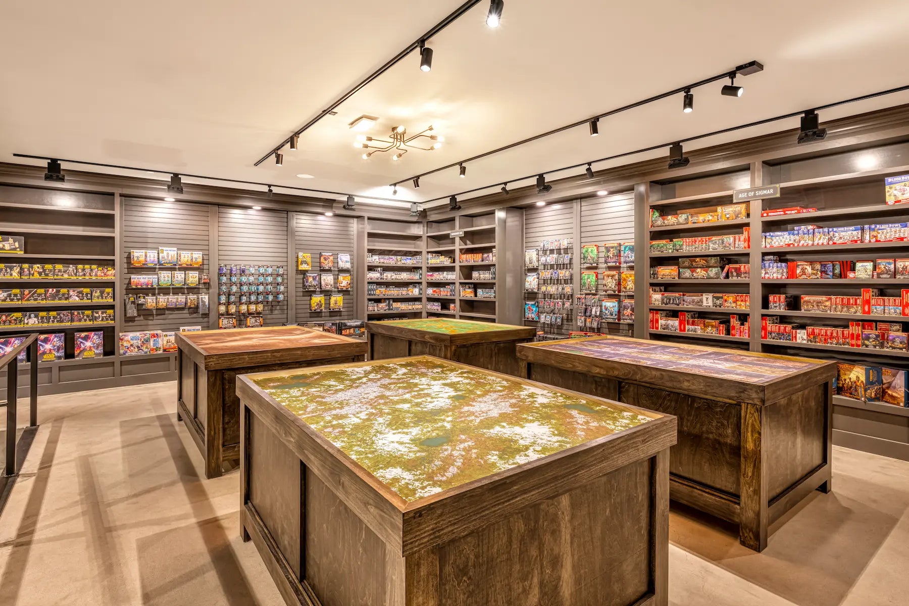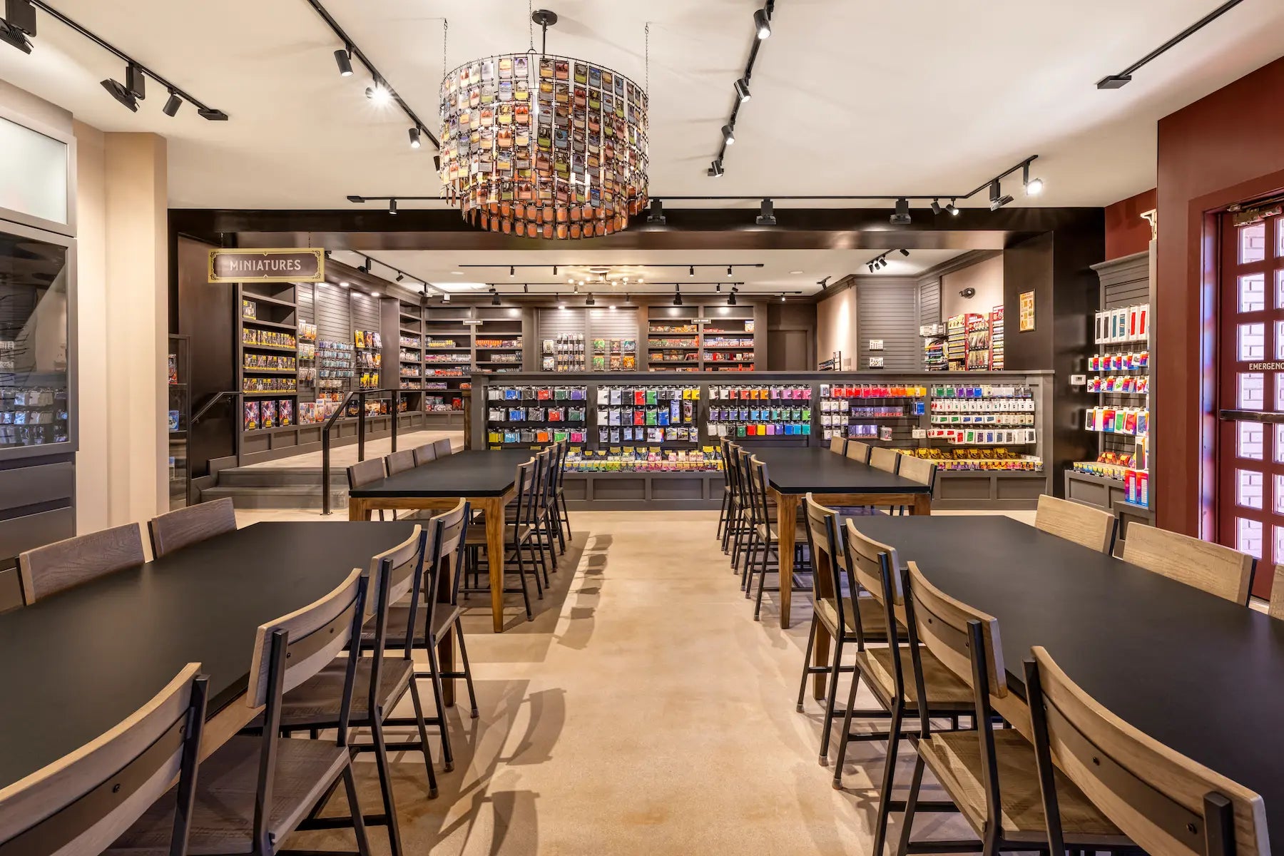 Enjoy floor-to-ceiling windows in our bright, modern dining room or step into our elevated miniatures space, ideal for painting, building, and waging tabletop battles. With a free-to-borrow board game library and a friendly, knowledgeable team, your next adventure is always within reach. Our in-store calendar features everything from Magic: The Gathering and Pokémon to Warhammer events and tabletop RPG nights.