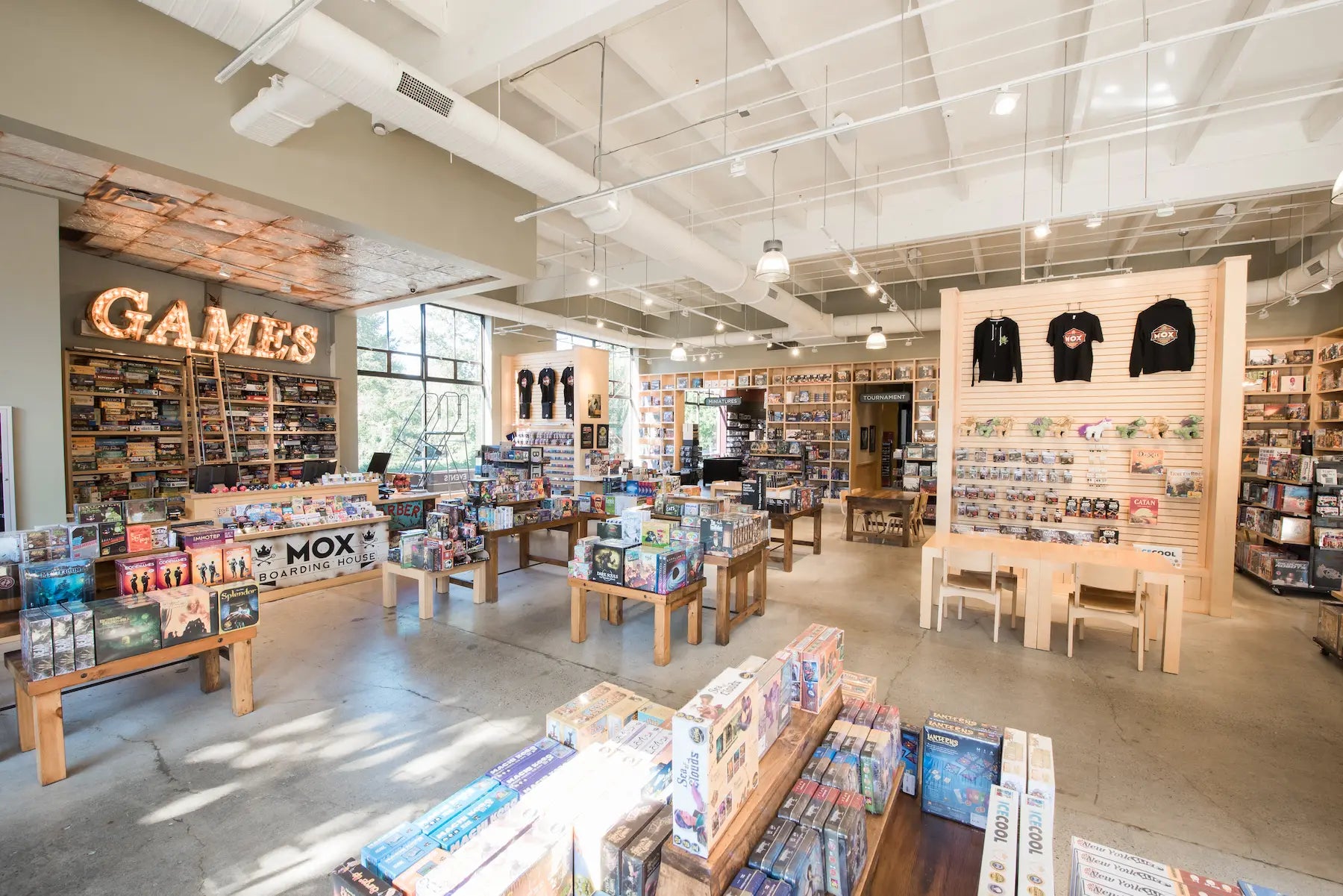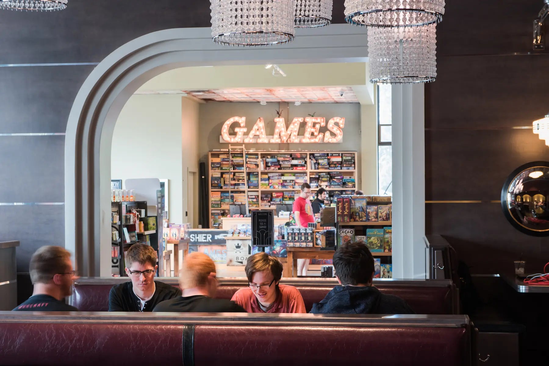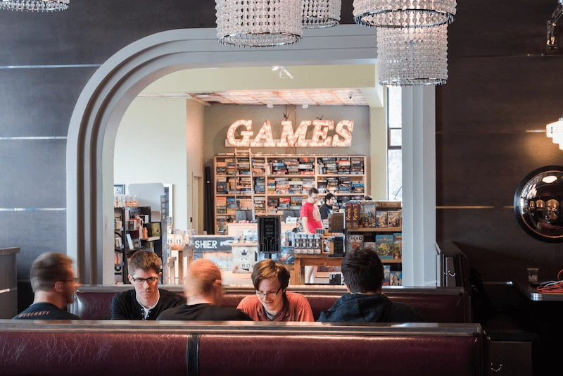 Welcome to Mox Boarding House Bellevue, located on Bel-Red Road and styled with eye-catching Art Deco flair. This full-service board game café, restaurant, and retail store invites you to eat, play, and connect in one of the Eastside’s most vibrant community hubs. Explore our curated game shop, settle in with house-made fare and craft cocktails, or borrow a board game from our free library for an unforgettable night with friends and family.