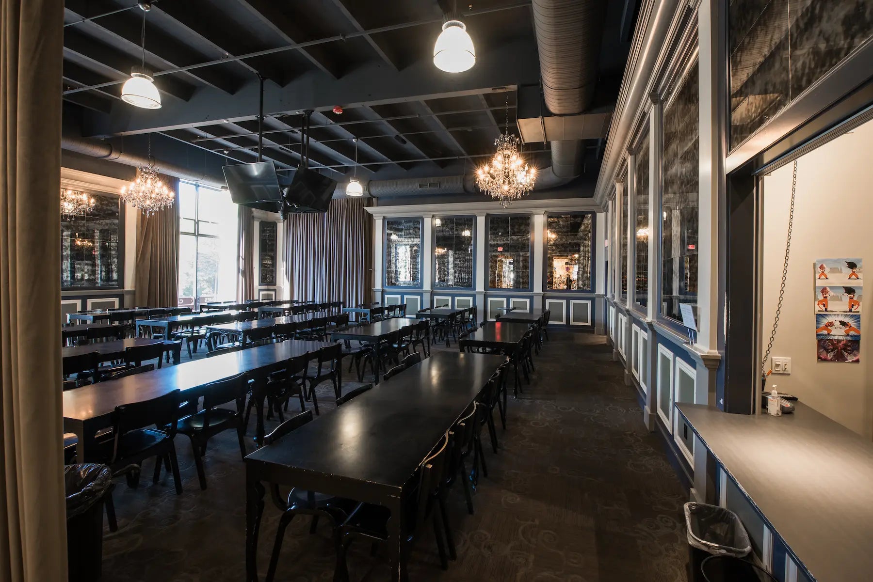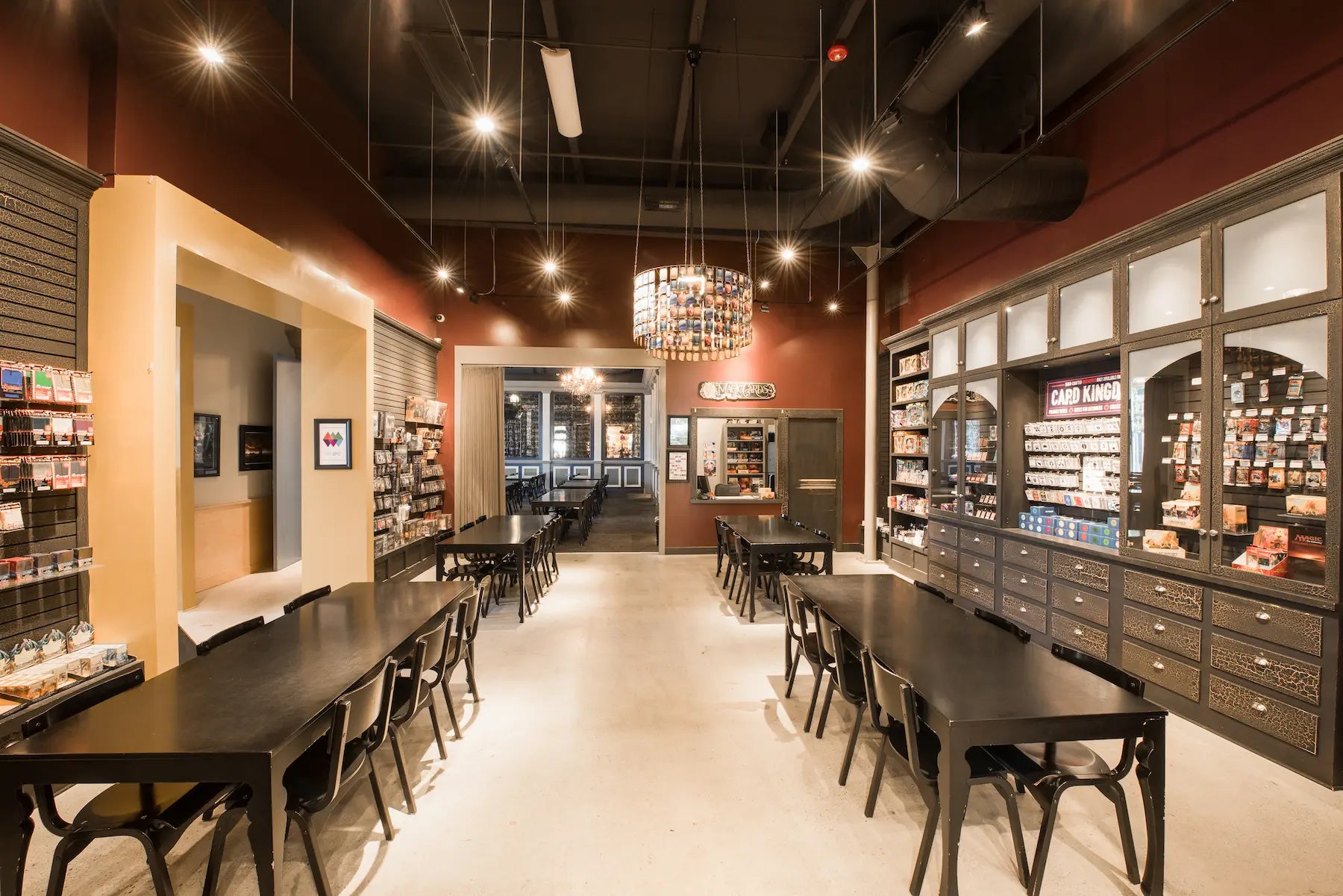 Step into the spotlight in Mox Bellevue’s elegant tournament room, where soaring ceilings and gleaming chandeliers set the stage for epic gameplay. With space for up to 120 players, it’s the perfect venue for large-scale tournaments, Learn to Play events, and casual open gaming. From Warhammer skirmishes and Paint Jams to Magic: The Gathering and Pokémon nights, there’s always something happening. Grab your friends, roll some dice, and make your next game night unforgettable.