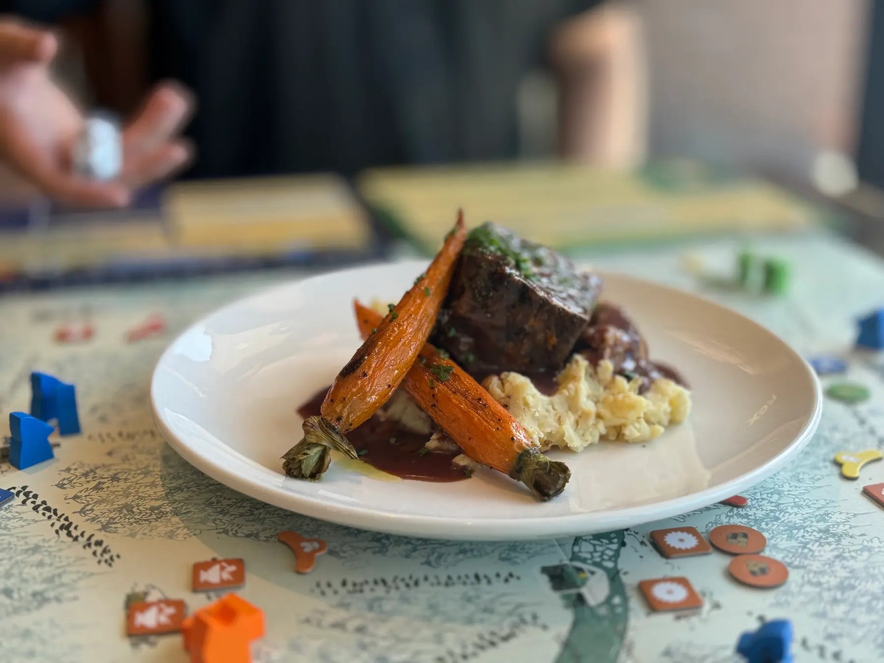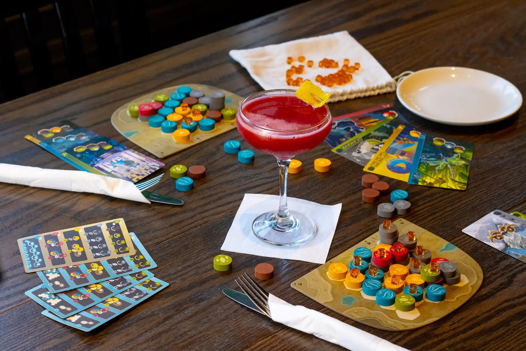 Enjoy local craft beers, ciders, wines, and meads, or sip on our hand-crafted cocktails and delightful zero-proof options. Whether you're celebrating, relaxing, or competing for tabletop glory, our food and drink menus are designed to enhance every moment.